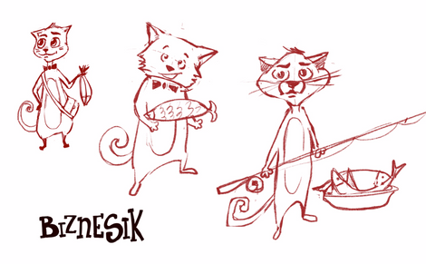 It is a story about the adventures of a cat named Biznesik. He wants to become a businessman but has no idea how to start. Then he meets famous businessmen and learns from them. I worked on the characters and all illustrations with the help of the awesome children’s writer, Arkadiusz Błażyca.